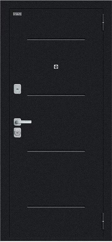 Надежная входная Дверь Браво Техно/BChrome Букле черное/Cappuccino Melinga премиум класса по цене 35 083 руб. Большая толщина стали защитит от проникновения в ваш дом, квартиру или коттедж. Используется очень качественная фурнитура: замки, цилиндры, ручки, защелки. Покрытие и отделка двери изготовлено под внимательным контролем производителя. Дверь имеет долгий срок службы и гарантию.